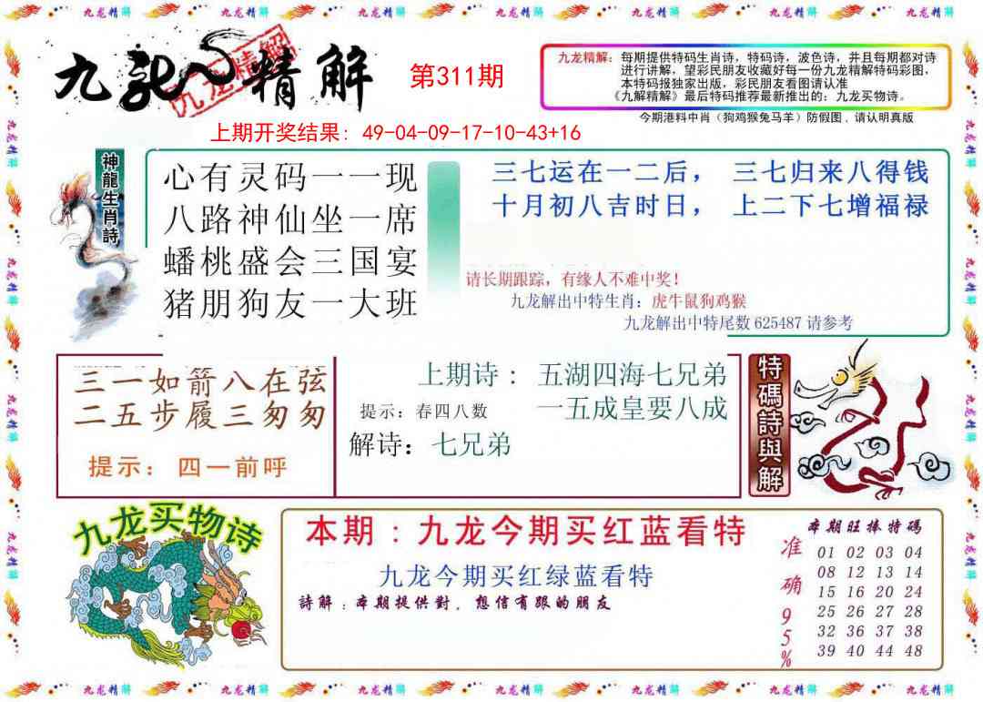 311期: 单双两肖 【单数+虎龙】 开?00准