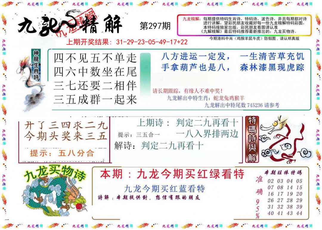 292期: 六尾中特 【012356】 开龙02准