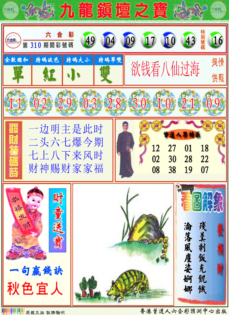 311期: 单双两肖 【单数+虎龙】 开?00准